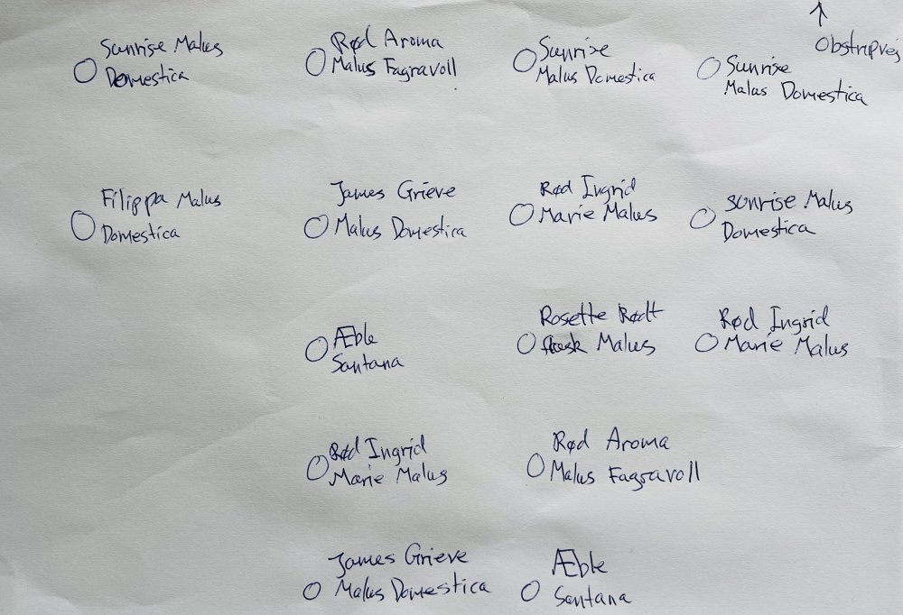 Der er 2. oktober 2023 plantet 15 æbletræer på den nederste del af vores fællesarealer, mod Obstrupvej. Håbet er at disse indenfor en overskuelig årrække kan berige Frøkærparkens beboere med delikate frugter hvert efterår, til fri afbenyttelse.